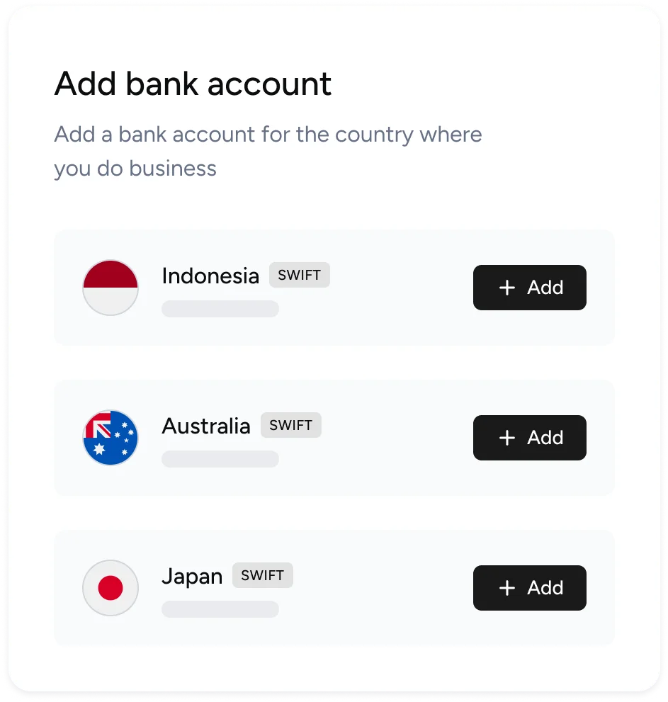 Need a local bank account to get paid on Amazon or from clients? Local receiving accounts act like local bank details that make it easy for the world to pay fast.